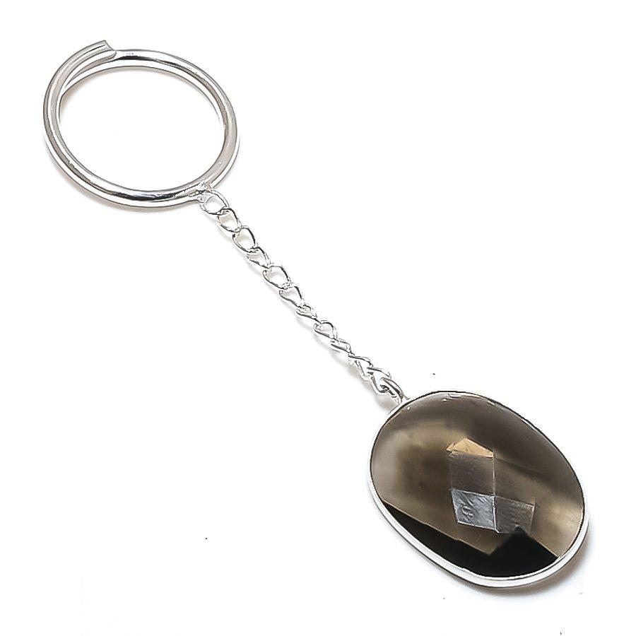 Natural Smoky Topaz Gemstone 925 Sterling Silver Jewelry Keychain 3.15" ETC-13844