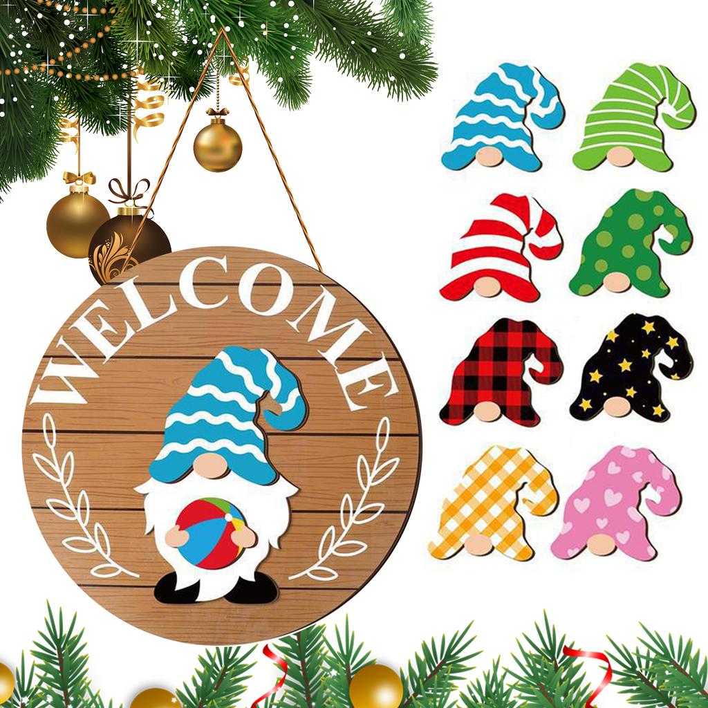 Halloween Gnome Welcome Sign with Magnetic Removable Hats DIY Gnome Door Sign Decor Multi-Purpose Creative Wood Decoration Plate