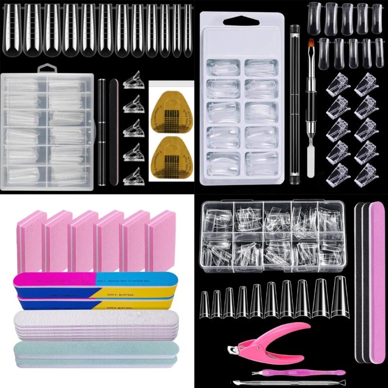 Nail Double Forms for Gel Set Nail Gel Extension Forms with Nail Clips Gel Brush Pickers Nail Files Gel Nail Mold