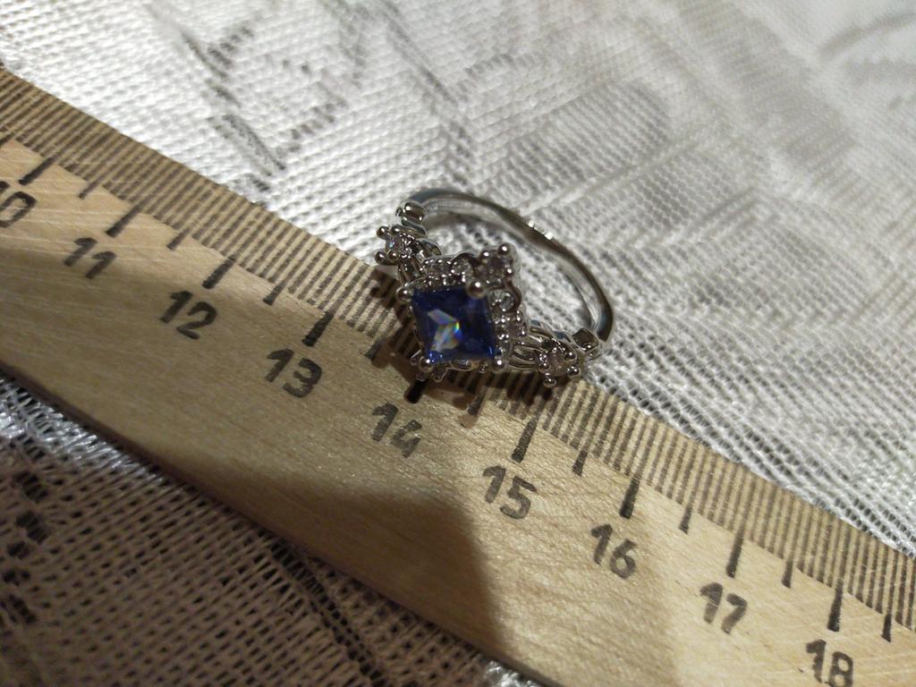Cao Shi Aquamarine Simulated Gemstone Ring with Rhomboid Zircon Embellishment - Elegant Princess Design