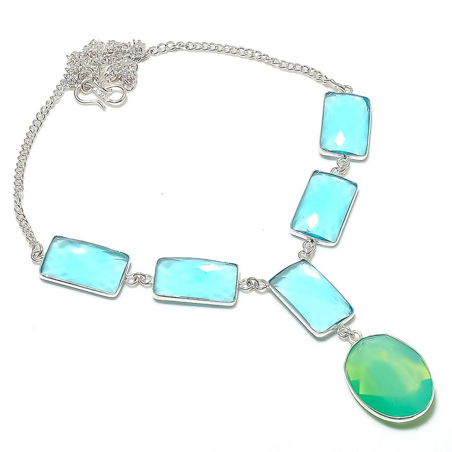 Natural Fire Opal, Topaz Gemstone 925 Sterling Silver Jewelry Necklace 18" ASN-5907