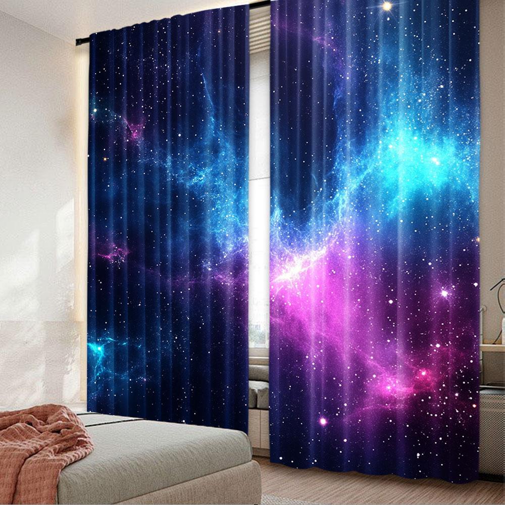 2Pcs Outer Space Starry Galaxy Curtain Planet Theme Curtain Birthday Party Suitable For Living Room Bedroom And Many Other