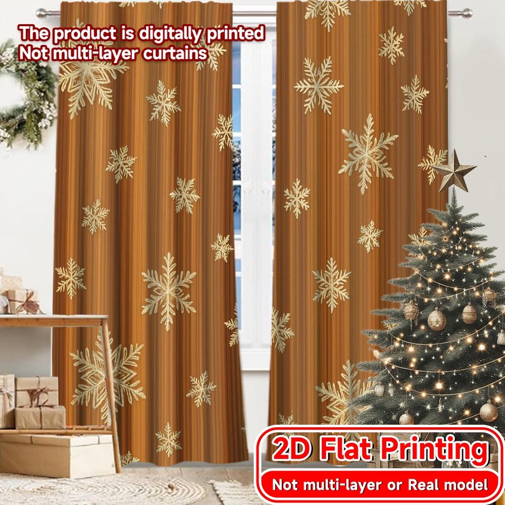 2D Flat Printing 2pcs Golden Flurries Pattern Chic Curtains Versatile Fabric Curtains Holiday Use for Translucent