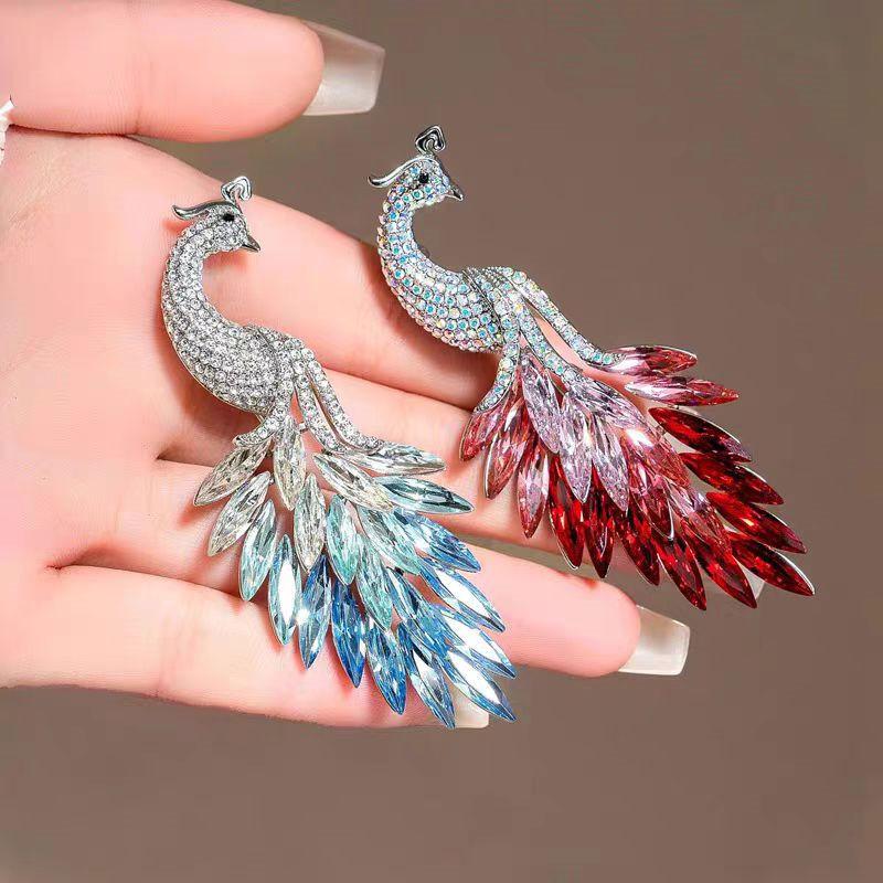 Exquisite Gradual Change Imitation Crystal Peacock Brooch Female Anti-light Buckle Elegant Atmosphere Dress Corsage