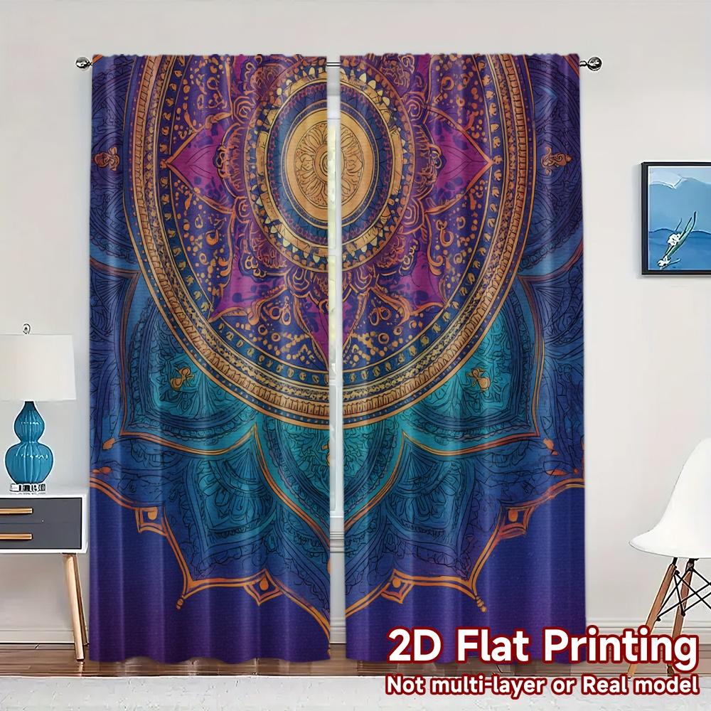 2D FLAT PRINTING 2pcs Curtains (Without Rod) Floral Mandala Design (2) Holiday Ramadan Printed Curtains Durable Polyester Fabric