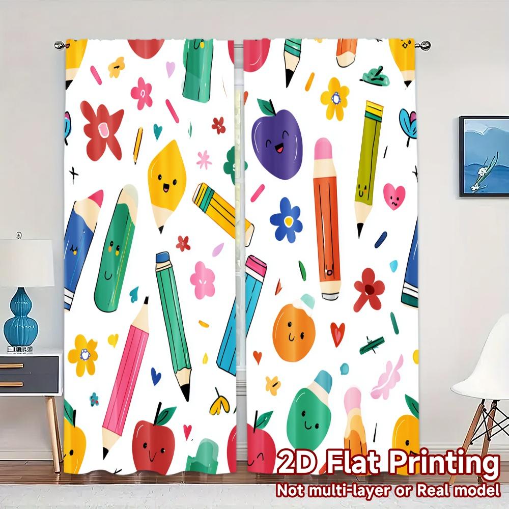 2D Flat Printing JIT 2pcs Curtains (Without Rod) Colorful Doodles Pattern Chic Curtains Durable 100% Polyester Fabric Curtains