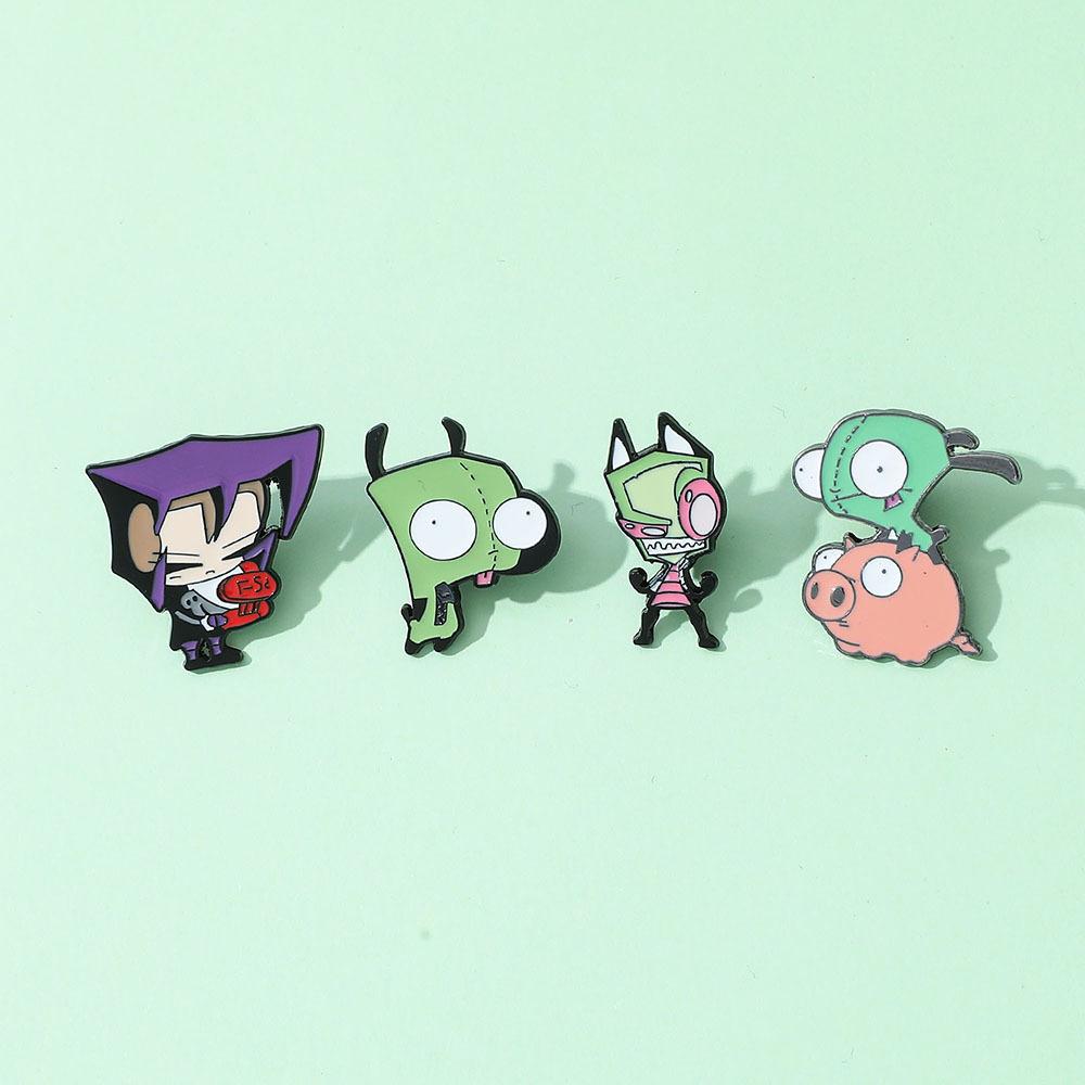 European and American Cartoon Characters Alien Invaders ZIM Alloy Brooch Green Alien Metal Badge Pin