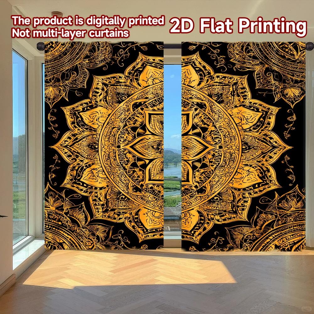 2D FLAT PRINTING 2pcs Curtains (Without Rod) Golden Mandala Design Saint Patrick Is Day Holiday Curtains with Digital Printing