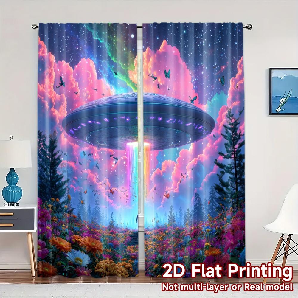 2pcs 2D FLAT PRINTING Curtains (Without Rod) Cosmic Encounter Modern Curtain Fabric Machine Washable Fabric Curtains Home Decor