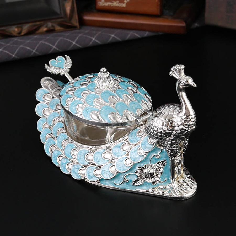 New Peacock Seasoning Jar Multi-color Selection Alloy Seasoning Box Kitchen Salt Tank Oil Bottle Moisture-proof with Lid Household Ornament