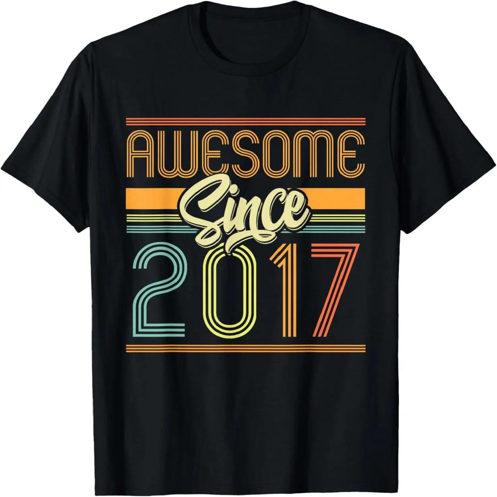 Awesome Since 2017 7th Birthday 7 Years Old Bday Kids Boys T-Shirt