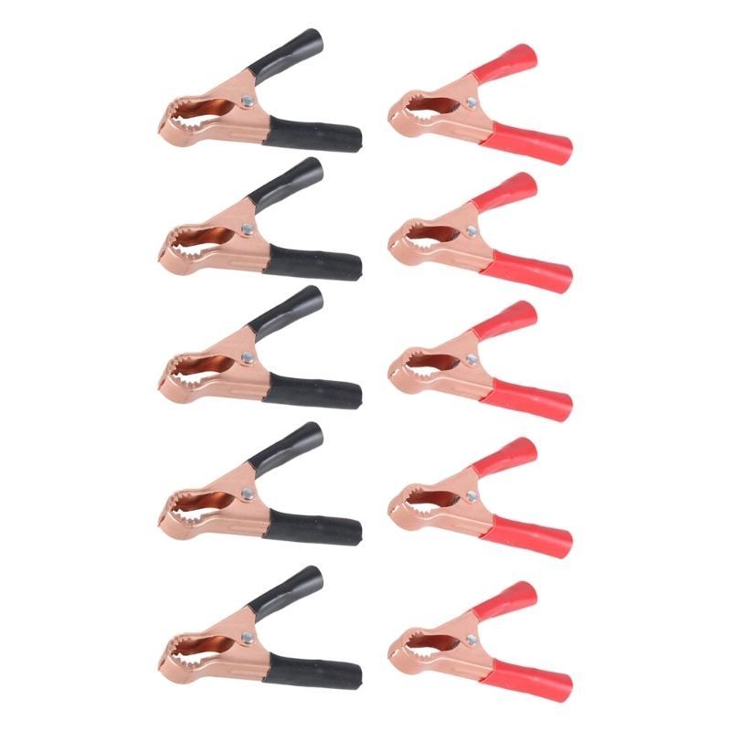 652F Pack Of 10 Brass Plates Crocodiles Clip Set 50A Battery Clamps with Teeth Insulated Handle Upgrades for Car Batteries
