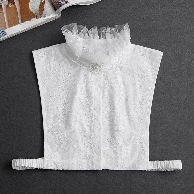 Chiffon Lace Fake Collar for Autumn Sweater Shirt High Stand Deatchable Collar Decoration Female Embroidery False Collar