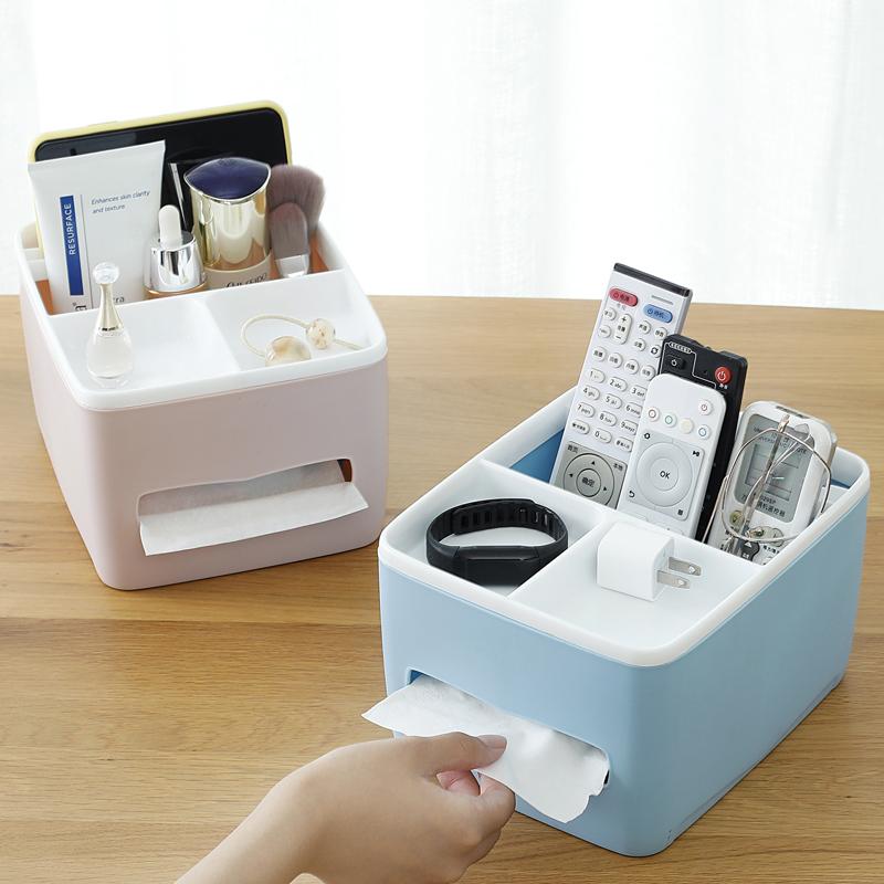 Household Plastic Multi-function Desktop Tissue Box Remote Control Case Cosmetic Organizer Holder Suction Paper Box