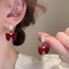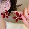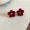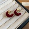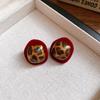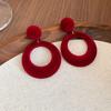 Retro Hong Kong Style Red Flocking Geometric Round Earrings Earrings Fashion Personality Temperament Earrings Women