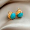 Real Gold Electroplated Silver Needle Zircon Round Artificial Turquoise Stud Earrings Retro Ethnic Style Earrings Simple Design Earrings