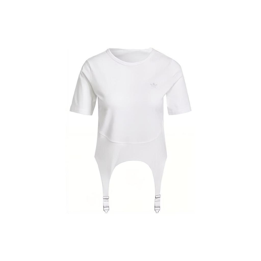 Adidas Originals Solid Color Casual Round Neck Fitted Short Sleeve T-Shirt Women Tops White HF2015