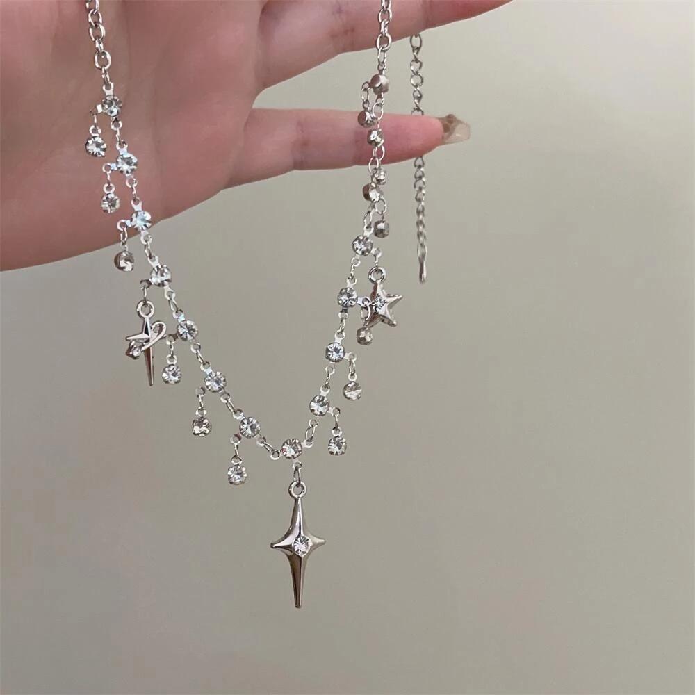 Fashion Chic Cross Crystal Zircon Pendant Tassel Necklace for Women Girls Clavicle Chain Accessories Aesthetic Y2k Jewelry