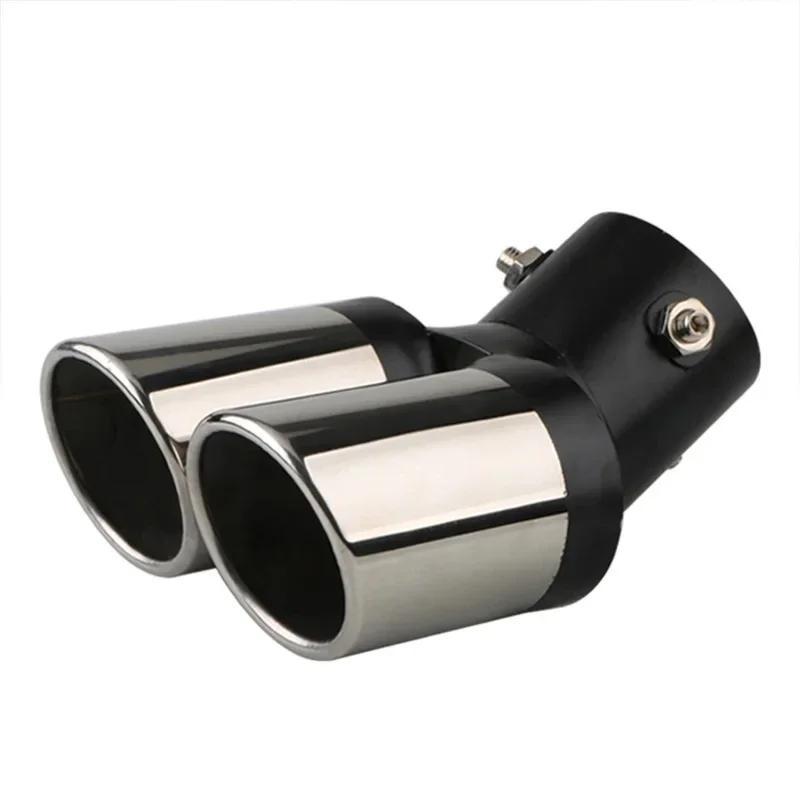 Universal Curved Double Outlet Car Exhaust Trim Muffler Pipe Tail Car Decoration Chrome Tail Pipe Stainless Steel Car Styling