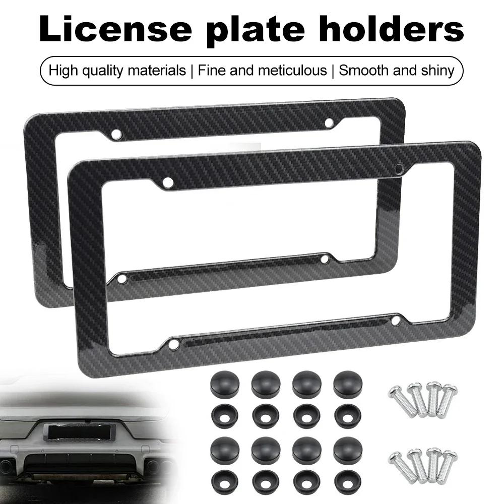Number Plate Holder Black Car License Plate Frame Label Carbon Fiber License Plate Label Cover Universal Auto Parts