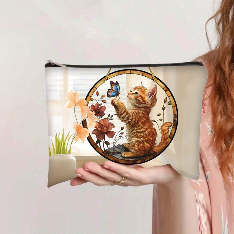 Cartoon Pattern Printed Letter Cosmetic Bag Large-capacity Student Pencil Case Canvas Four-corner Bag Portable Toiletry Bag