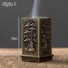 1Pcs Alloy Incense Stick Burner Sandalwood with Hollowed Out Pattern Lotus Incense Censer Square Vertical Retro Incense Box