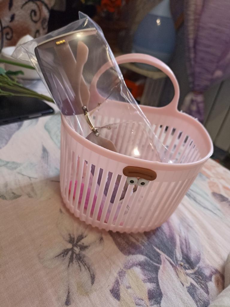 A small basket, I thought it would be bigger. But the shampoo will fit