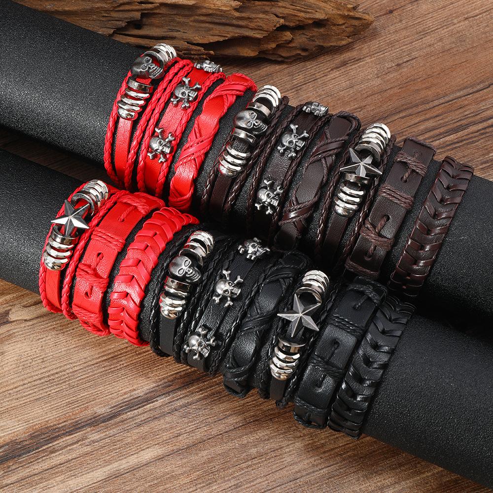 Foreign Trade Direct Supply Multi-color Alloy Skull Woven Leather Jewelry Men's Multi-layer Hand-woven Bracelet