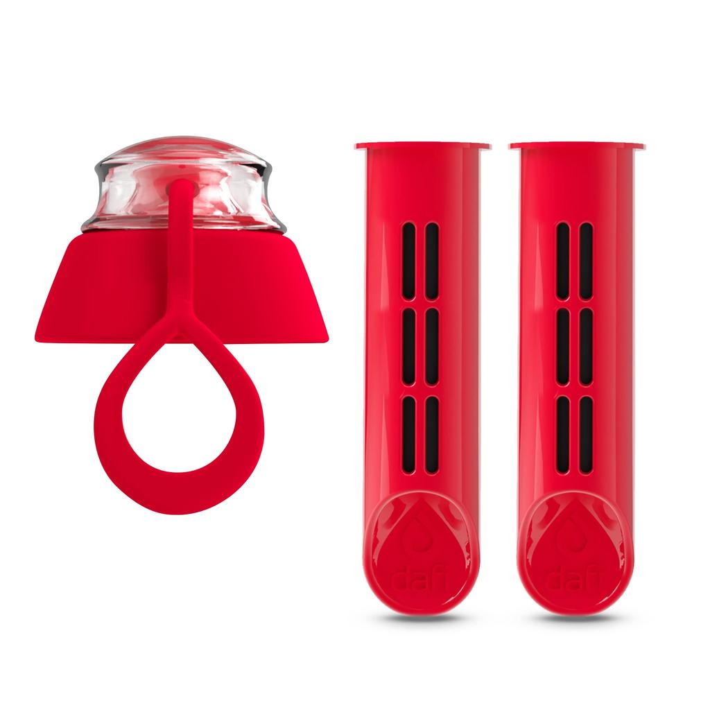 DAFI Water Filter for Water Filter Bottles, Activated Carbon Filter, 2 Cartridges + 1 Cap [Japan Specification, Official Japanese Product] (Red)