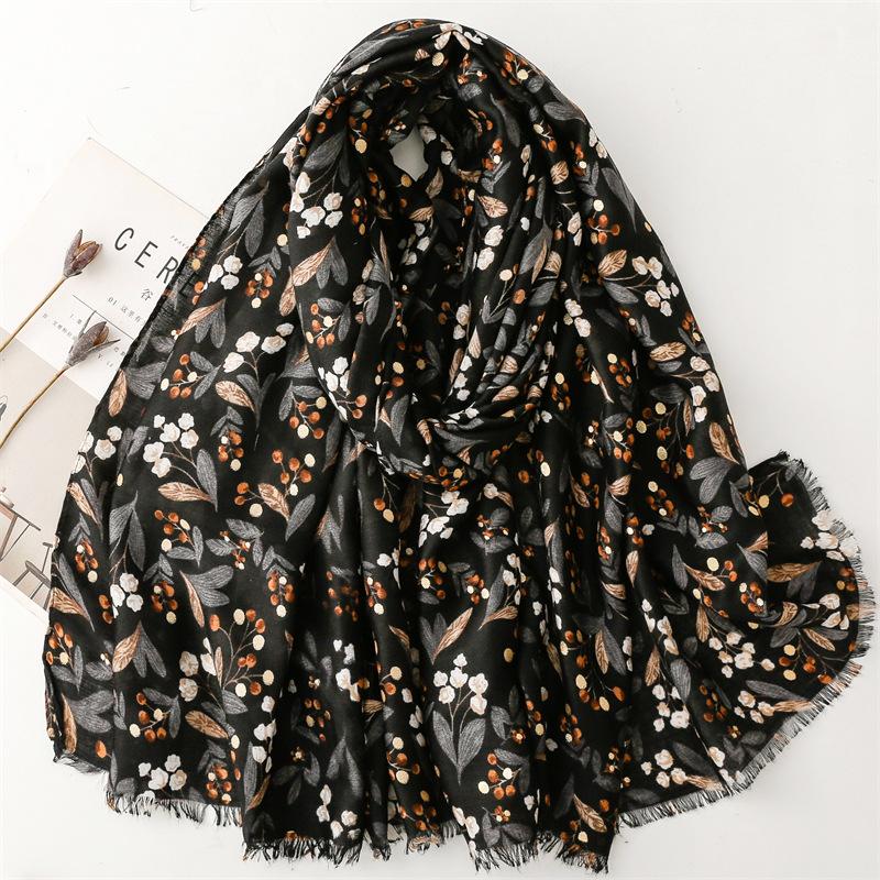 Winter Lurex Glitter Cherry Polka Floral Fringe Viscose Shawl Scarf Lady High Quality Print Pashmina Stole Bufandas Muslim Hijab