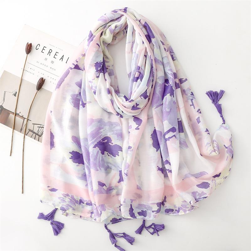 Ombre Gradient Painting Floral Tassel Viscose Shawl Scarf High Quality Print Soft Pashmina Stole Muslim Hijabs Sjaal 180*90Cm
