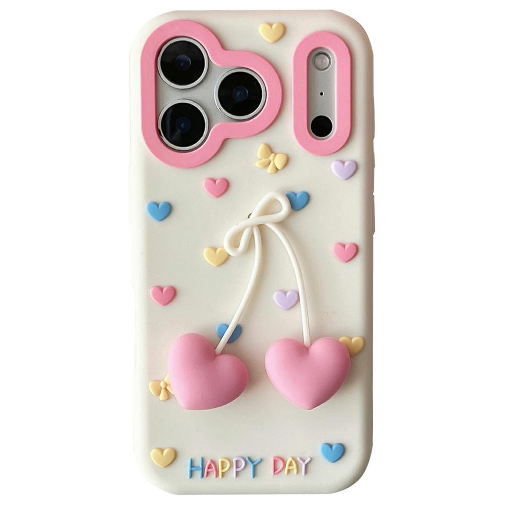 For iPhone 17 Pro Silicone Case Cute Heart Shape Pendant Shockproof Phone Back Cover