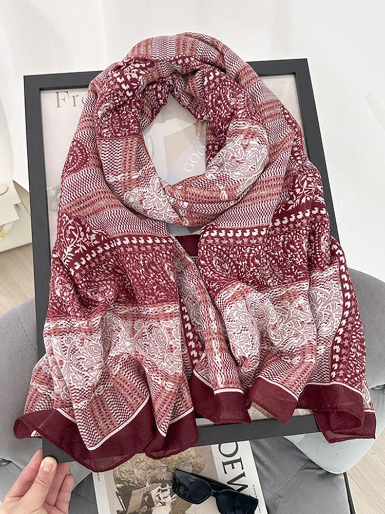 Elegant Women Retro Beach Silk Scarf Striped Print Wrap Shawl Lady Sunscreen Bandanas Hijab Scarve Pareo Headscarf Casual Boho