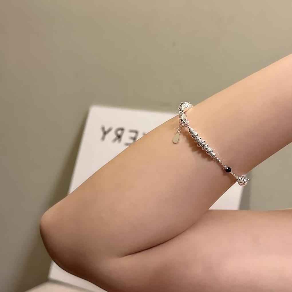 Women's 925 Silver Black Bead Point Simple Bracelet