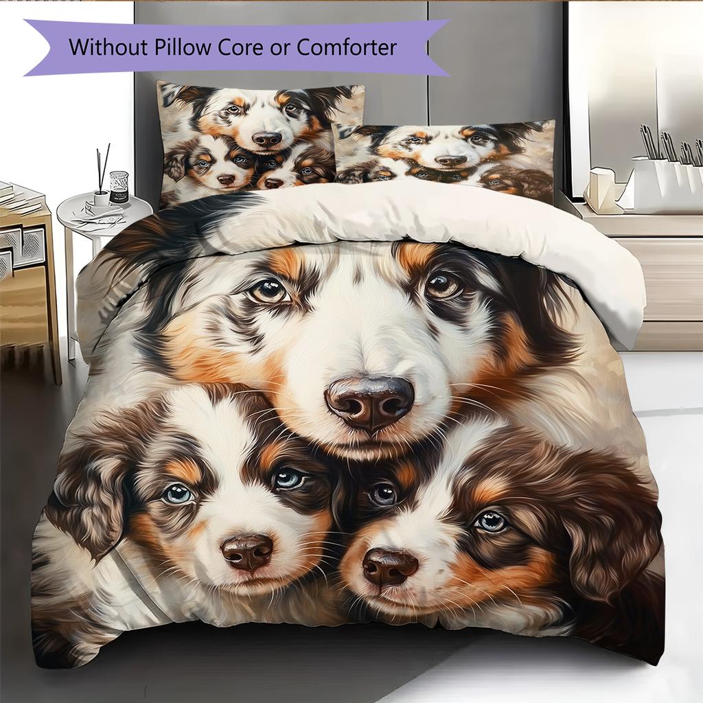 Australian Shepherd Dog Pattern Bedding Home Decoration Birthday Gift (1 * Duvet Cover + 2 * Pillowcase, Without Core)