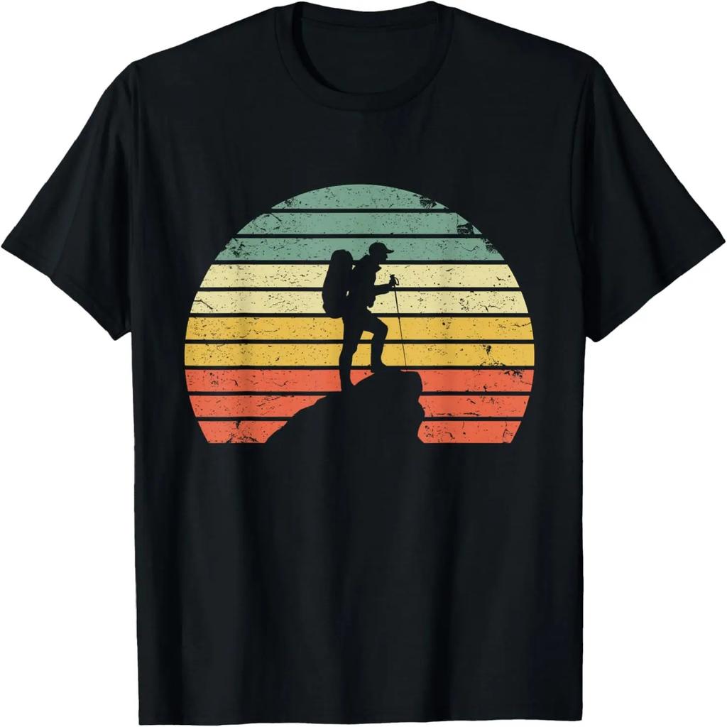Vintage Hiking T Shirt Hiker On Rock Retro Sunset Silhouette T-Shirt