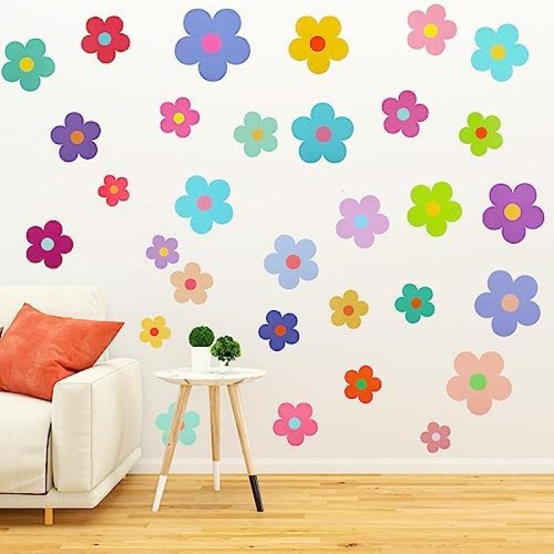 63 Pieces Flower Stickers, Colorful Wall Decals for Girls Room, DIY Self-Adhesive Boho Wall Art for Nursery, Bedroom Decor