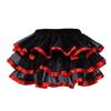 Elegant Multi-Layer Tutu Skirt With Red Ribbon Edging: This corset set features a voluminous black gauze skirt composed of multiple layers, each trimmed with vibrant red satin ribbons. The striking color contrast creates a dramatic and romantic visual effect, perfect for making a bold statement at any event or themed occasion.