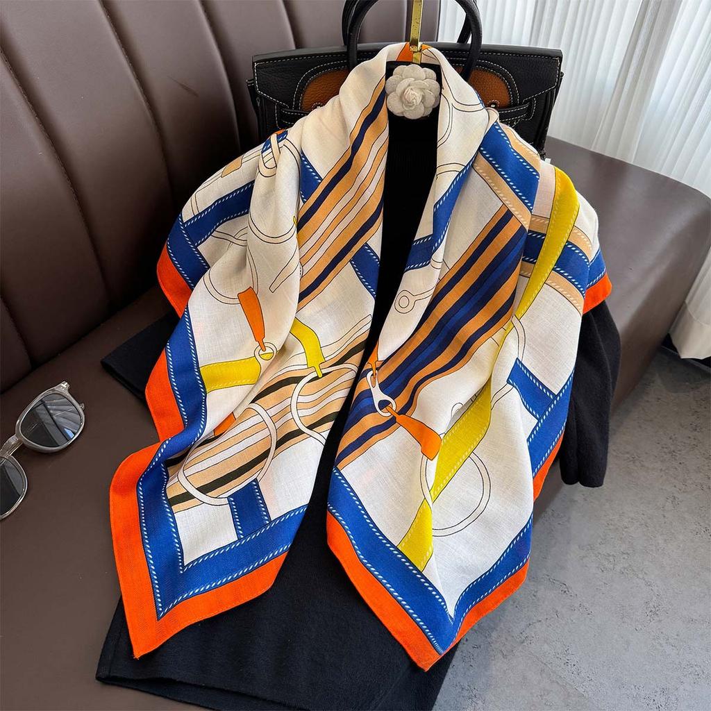 90*90Cm Fashion Printed Square Scarf Women Imitation Silk Scarves Bandanas Luxury Travel Shawl Wraps Elegant Hijab Neckerchief