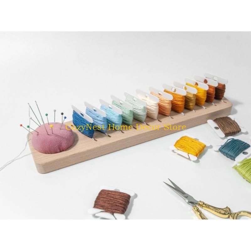92MF Wooden Thread Rack Thread Plate Holder Organiser with Sewing Pins Holder for Embroidery Thread Quilting and Sewing Pins