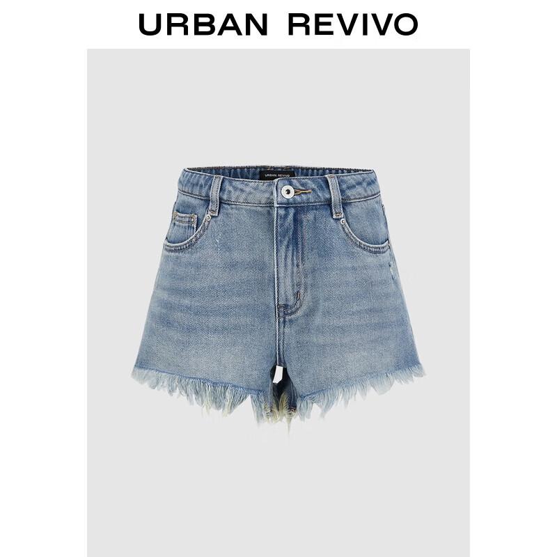 UR 2025 Autumn Women's Retro Fringed Denim Shorts