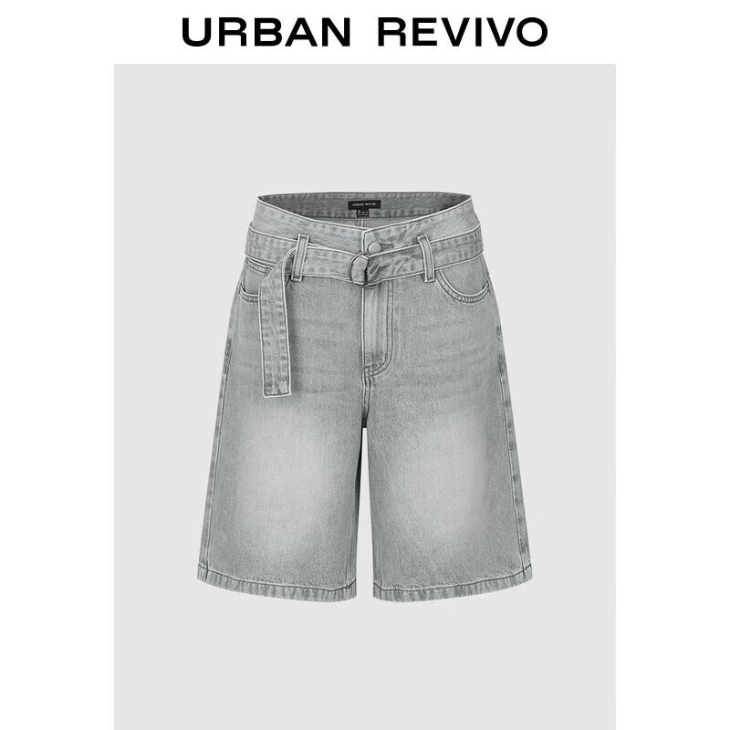 UR 2025 Autumn Vintage Washed Buckle Belt Denim Shorts