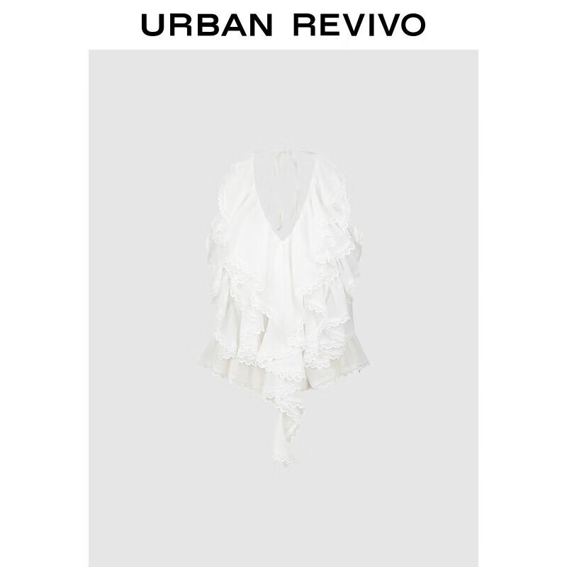 UR 2025 Autumn Spliced Lace Ruffle Halter Camisole