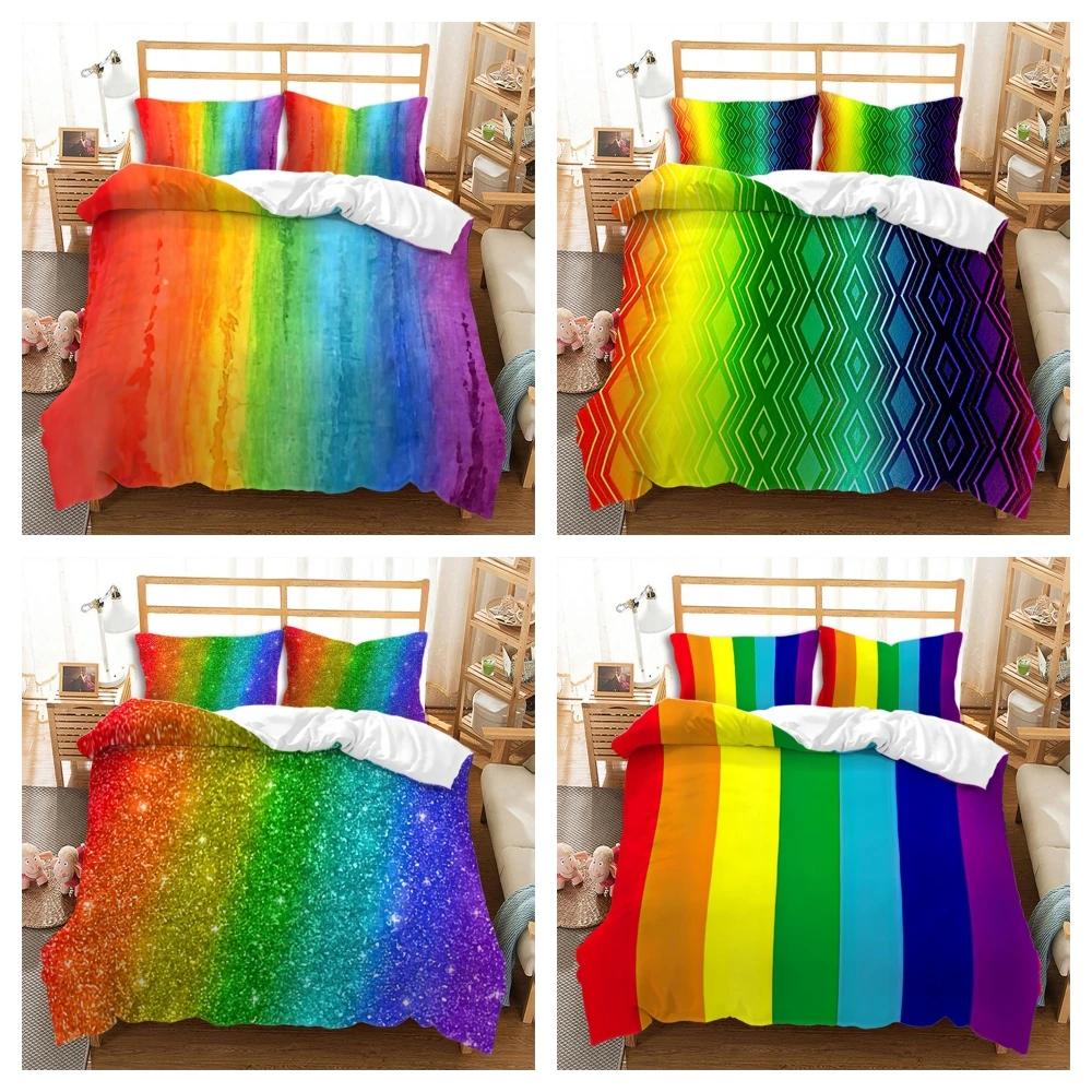 Colorful Stripes Rainbow 3D Printed Duvet Cover SoftComfortable And Breathable Bedding Set 3Pcs Bedclothes Gift For Children