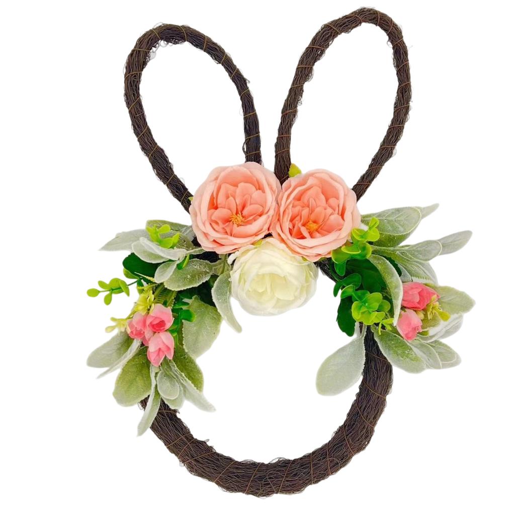 Easter Bunny Wreath Door Hanging Decoration Handmade Simulated Flower Wreath Home Front Door Decoration Background Easter Decor Wreath