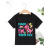 Boy's Casual T-shirt, 3rd Birthday Dino Print Comfortable Short Sleeve Crew Neck Top, Boys Summer Clothing