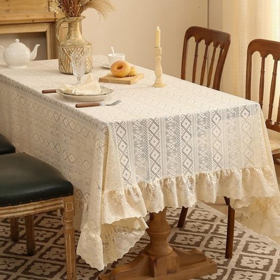 Enhance your dining experience with this elegant French lace ruffle tablecloth, designed for both style and functionality. Crafted from durable, natural washable fabric, it offers ultimate softness with a casual pleated effect that requires no ironing.