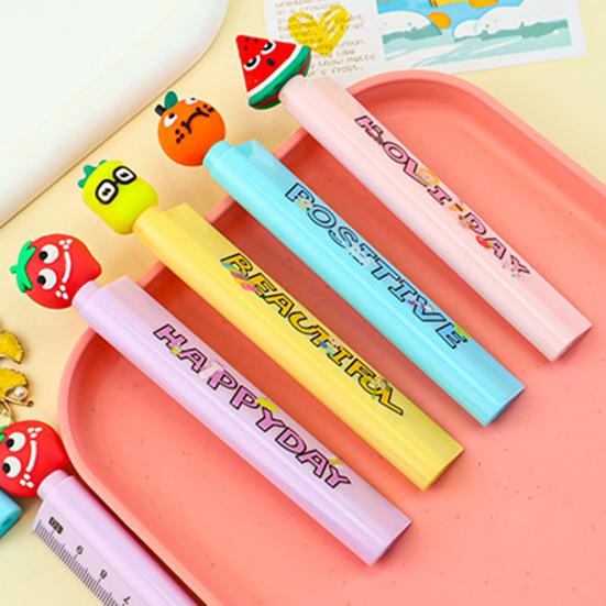 Playful Aesthetic Appeal: Adorned with charming 3D fruit-shaped caps such as watermelon and orange, paired with a macaron color pen body and cute English prints, it serves as an eye-catching and delightful desk decoration that sparks joy.