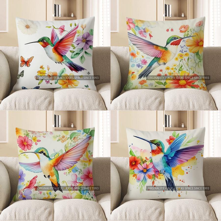 Home Decor Colorful Hummingbird With Flowers And Butterflies Pattern Cushion Cover Suitable For Sofa Bedroom Car Pillow Cover