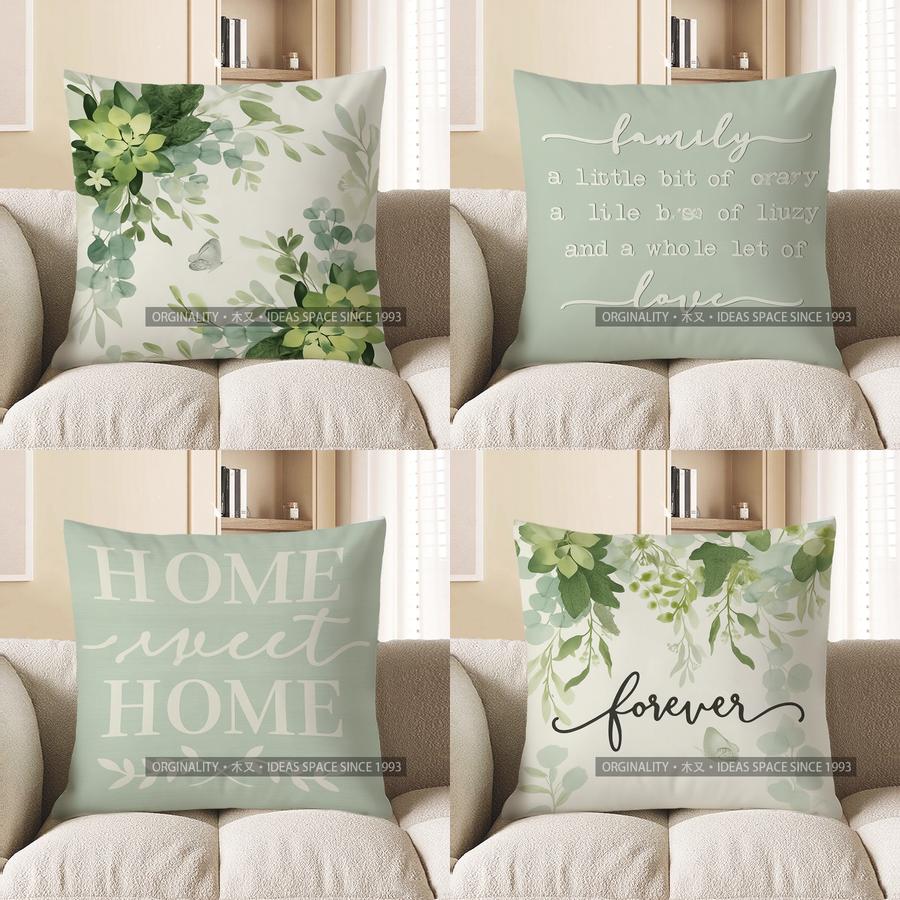 Home Decor Green Floral & Butterfly Decorative Pillow Cover Pattern Cushion Cover Suitable For Sofa Bedroom Car Pillow Cover